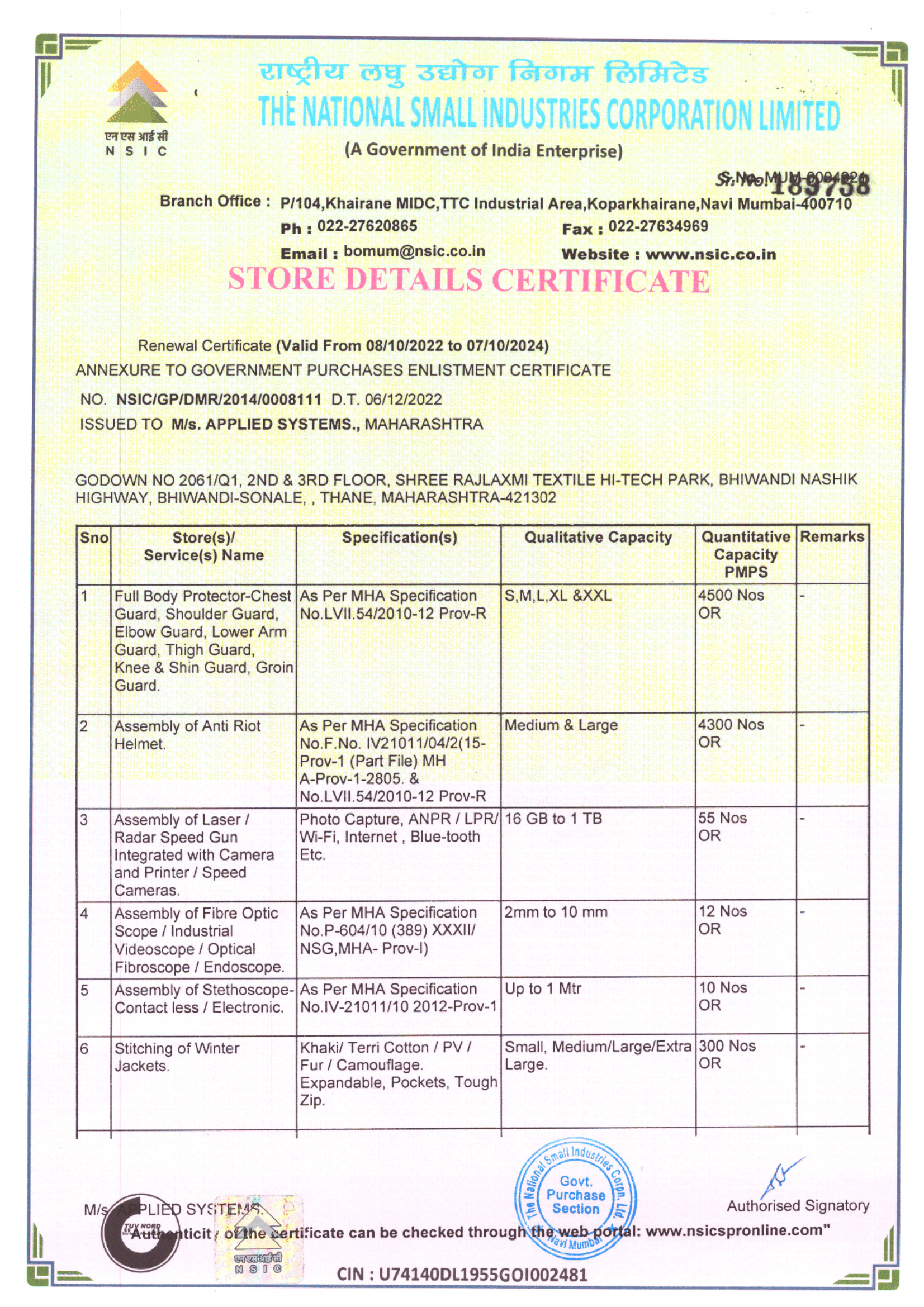 CERTIFICATES